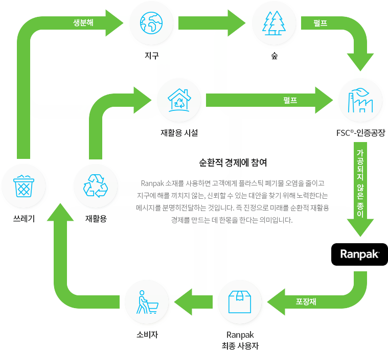 Ranpak 의 종이완충재는 환경적 사회적으로 책임있게 관리된 숲으로 부터 생산됩니다. Ranpak의 모든 종이완충재는 FSC 인증을 득하였습니다.
