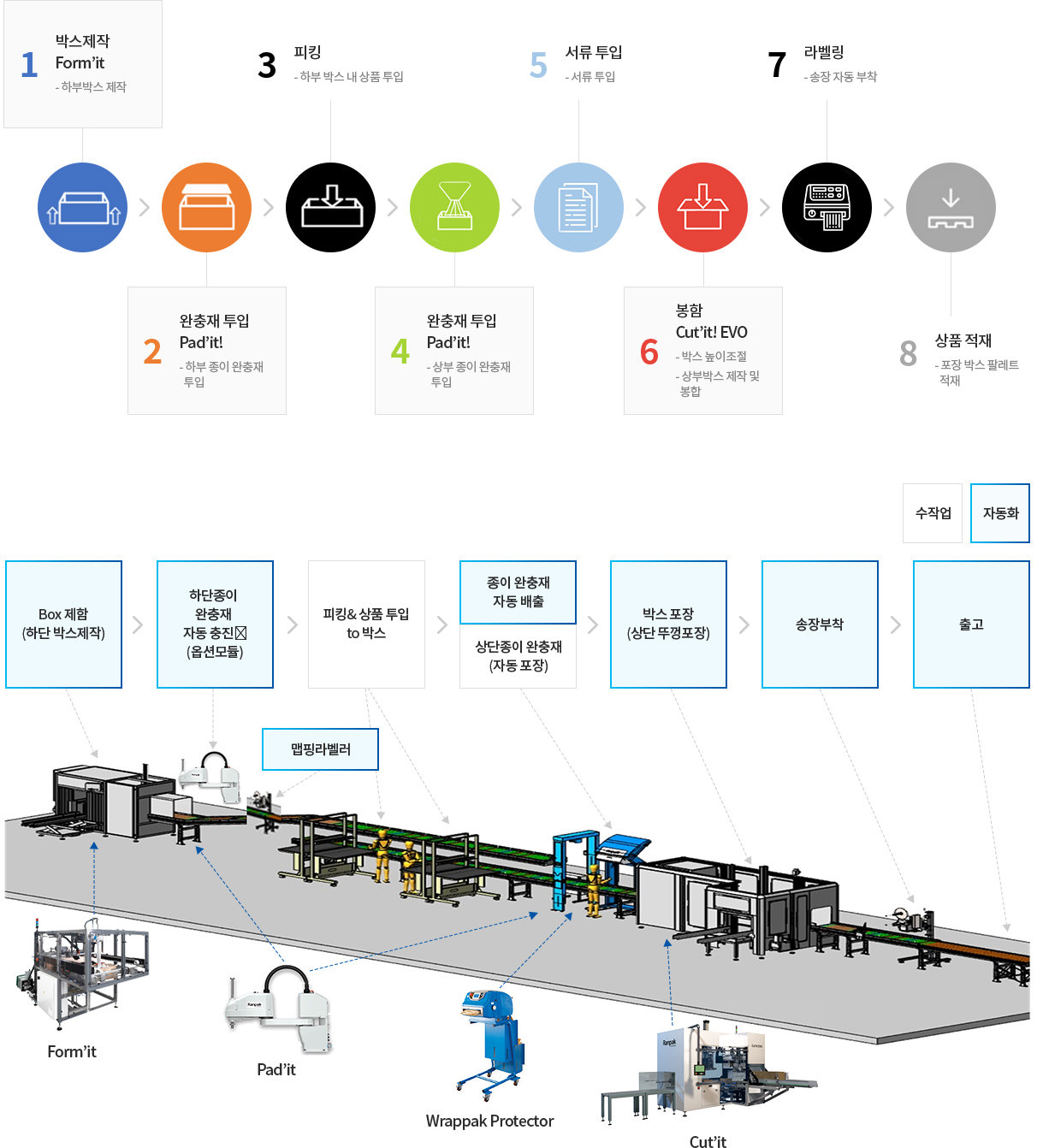 랜팩오토매이션(포장자동화설비)은 제함,완충,봉함 자동화 솔루션을 제공합니다.
