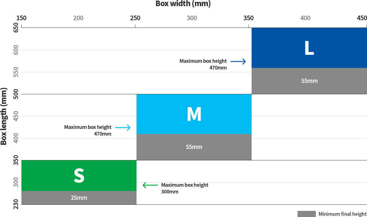 | Cut’it | Carton length | Carton width | MaximumCarton height | Machine dimensions (L x W x H) |