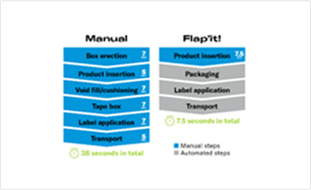 통합 포장으로 작업자 처리량을 5배 증가시킬 수 있습니다.